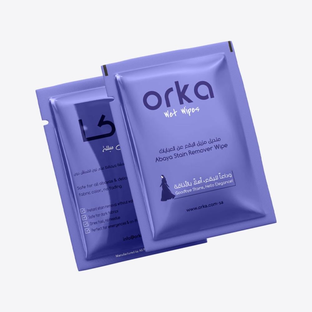 الوصف: مناديل أوركا (Orka Wipes) | مزيل بقع فوري من العباية ومن جميع الملابس والأقمشة | تنظيف عميق بدون ماء. تزيل بقع القهوة والزيت والطعام وأي بقع أخرى دون ماء أو أثر.